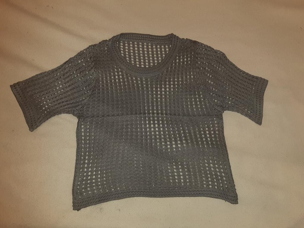 Fin bluse, passer akkurat til størrelse 46. Ikke bare et sommeralternativ, som en gjennombrutt genser kan den også brukes i kjøligere vær, over bluser o.l., siden den er laget av et ganske varmt garn.