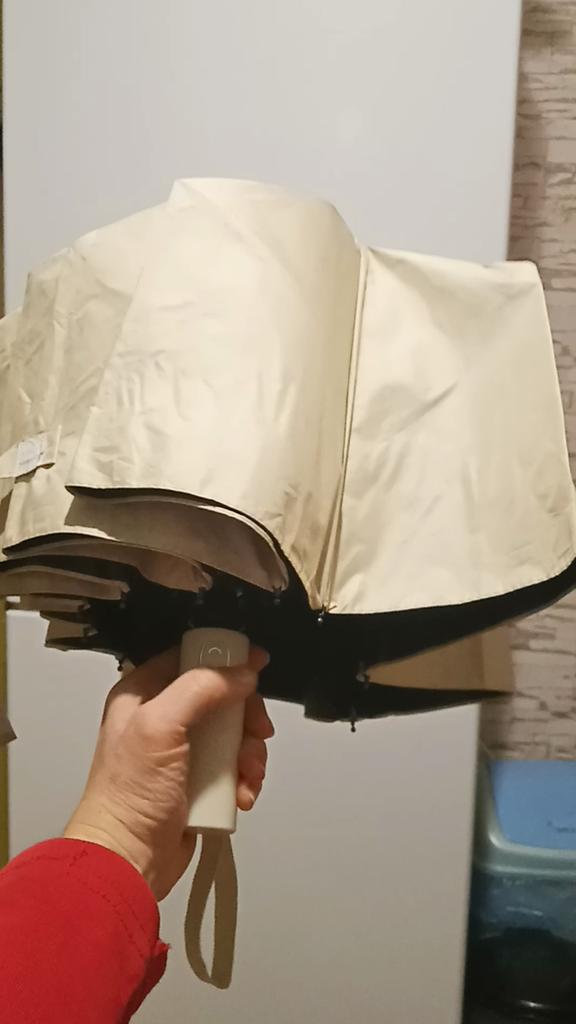 Paraplyen er som på bildet, håndtaket er laget av behagelig å ta på plast, og selve paraplyen ser ut som sterke eiker. Har ikke brukt den ennå.