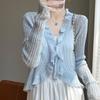 Mishow Cardigan for Women 2024 New Elegant Commuter Solid Loose Ruffle Design+ Blue Halterneck Vest MXD13Z0407