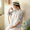 Johnature Women Vintage Shirts Solid Color Tops Summer O-Neck Long Sleeve Blouses Casual Summer Open Stitch