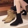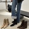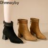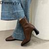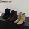 Mote Spiss Tå Dame Slanke Korte Støvletter Mote Bakglidelåser Ankelstøvletter Retro Stil Firkantede Hæler Høst Vinter Sko
