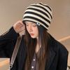 Ny motetrend Vinter Svart og Hvit Stripet Strikkelue for Kvinner Kontrastfarge Stripe Vinterluer Varm Lue