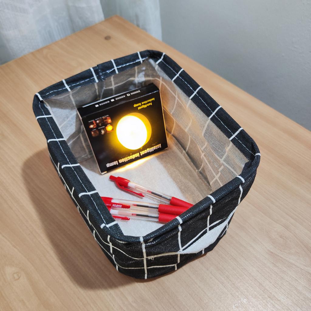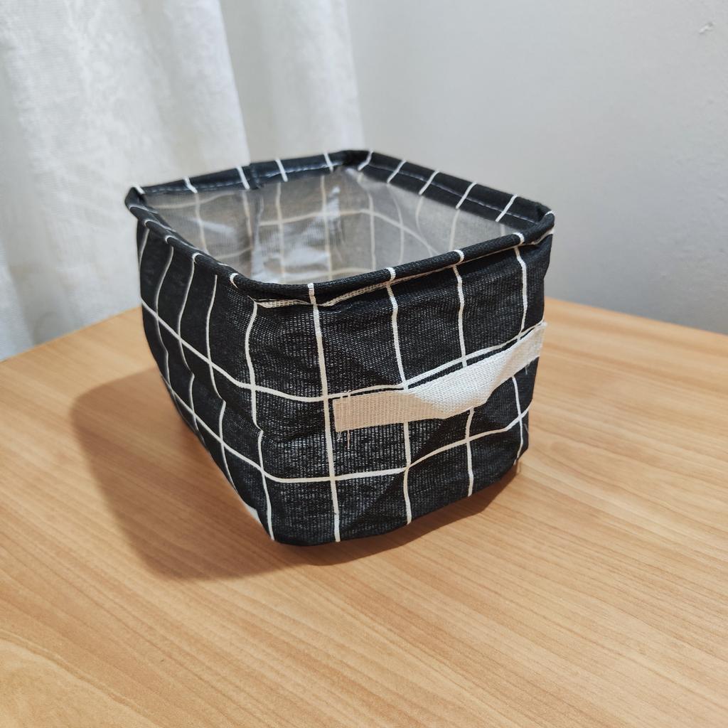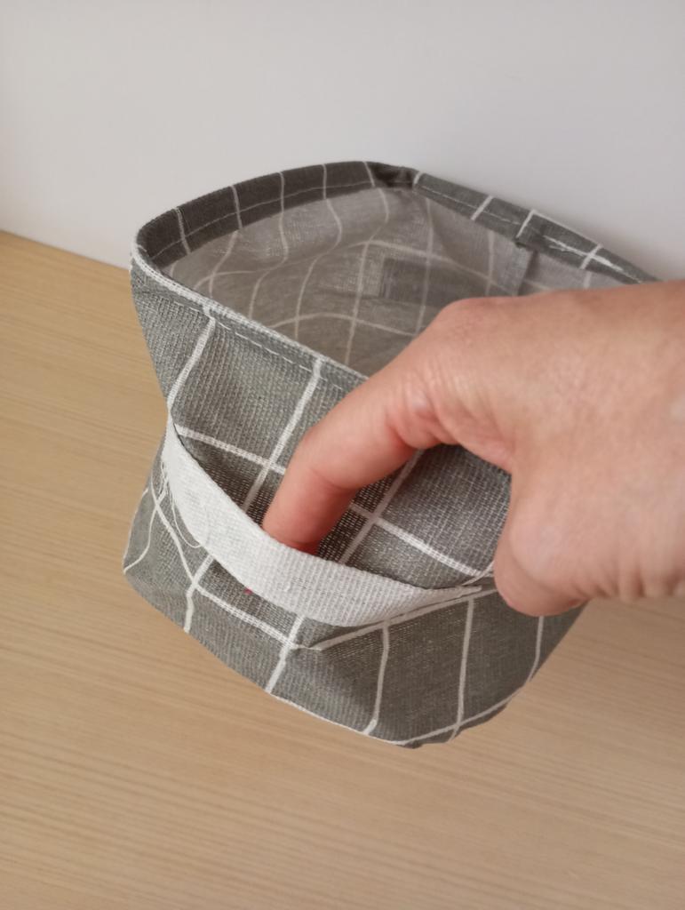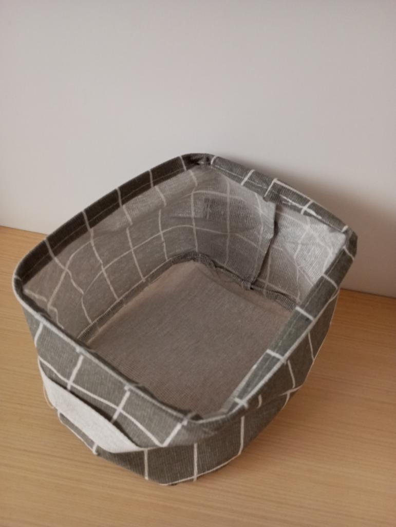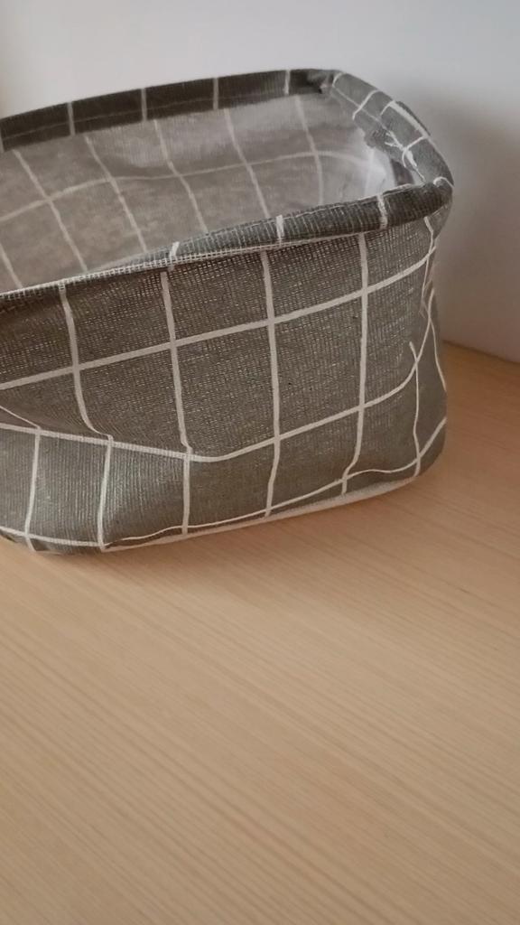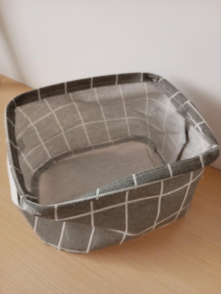 Et enkelt, men veldig nyttig produkt! En oppbevaringskurv med håndtak i stoff som har blitt en perfekt løsning for å organisere de små tingene mine på bordet. Jeg bruker den til å oppbevare kosmetikk, skriveutstyr og småting som alltid blir spredt rundt – og nå er alt ryddig og tilgjengelig. Stoffet er behagelig og slitesterkt, håndtaket er behagelig å bære fra sted til sted, og designet er nøytralt slik at det passer fint inn i ethvert rom. Anbefales på det sterkeste for de som liker orden, men ikke ønsker å investere i store eller dyre esker.