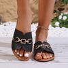 Fashion Women's Wedge Non-slip PU Waterproof Retro Solid Color Slippers Women's Summer New Daily Casual Beach Vacation Round Toe Sandals