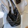 Hollowed Out Large Capacity Handbag Soft Leather Crossbody Shoulder Bag Casual Bucket Bag