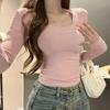 Autumn 2023 Women's Slim Long-Sleeve U-Neck Black T-Shirt