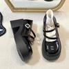 Vintage French heightening Mary Jane shoes women's 2024 spring black thick heel platform small leather shoes shorty Le high heels