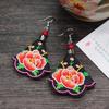Retro hand-embroidered fabric earrings female long flower fringed versatile temperament performance earrings earrings