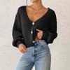 Women's Solid Color Button-Up Cardigan Deep V-Neck Short Loose-Fitting Jacket Casual Top
