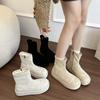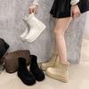 Retro tykksålede høydeøkende tynne støvletter Martin-støvletter trendy høst- og vintermote semsket skinn flate hæler middels støvletter allsidige damestøvletter