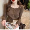 Soft Vibe Square Neck Chic Knit Cardigan Women's Autumn & Winter Elegant Slimming Short Sweater Outer Jacket