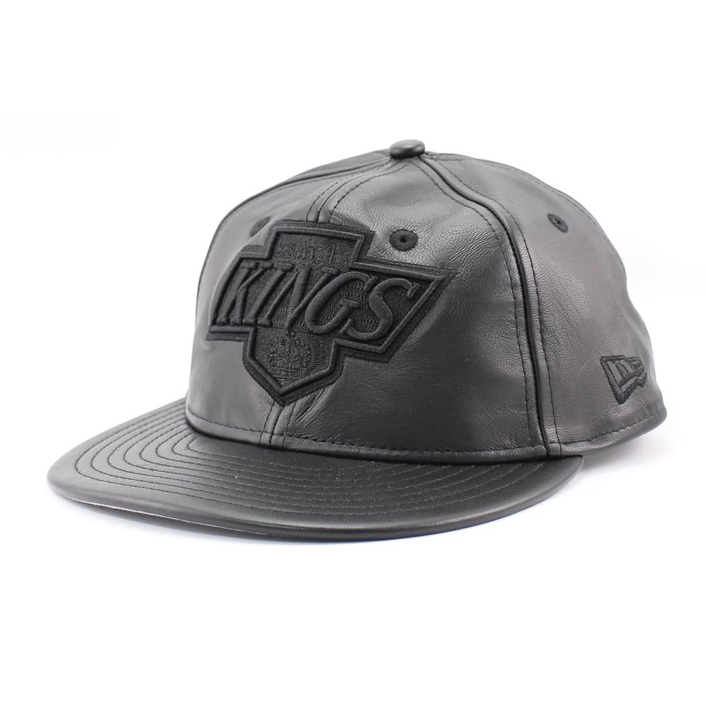 New Era RC9FIFTY Strapback Los Angeles Kings NHL Genuine Leather Retro Crown Strapback Blackout Cap, Cap, [Used]
