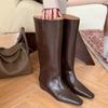 Flate Dames Høye Støvletter Spiss Tå Klassiske Chelsea Støvletter Knehøye Skinnsko 2024 Trend Vinter Designer Goth Damer Zapatos