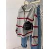 Autumn and winter new retro striped knitted jumper women's half zipper contrasting color loose casual college style sweater