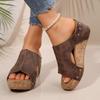 Large size slope heel cool slippers summer new retro platform sandals women's fish mouth muffin slippers