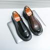 Fashion Loafers Men Casual Retro Le Fu Shoes Black Brown One-foot Thick-soled Anti-slip Height-increasing Brand Leather Shoes Size 38-46