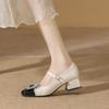 9-One-word bag head thick heel single shoes women's square head rhinestone high heels student dress professional commuter women's shoes