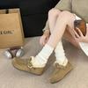 Fashion Shoes Woman 2024 Female Slippers Cover Toe Flock Low New Soft Flat Rubber Autumn Slides Rome Retro Fabric PU Hoof Heels Casual
