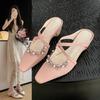 Sheepskin version~ French gentle purple cross with rhinestone knitted square head Mueller shoes for women to wear outside and cool slippers fo