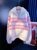 Høst vinter ny dame koreansk versjon løs moteriktig polokrage stripet strikket cardigan varm glidelås genserjakke