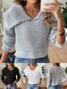 Women's Short Large Collar Butterfly Knot Splicing Pullover Sweater Top