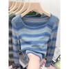 Autumn's New Retro Square-neck Rainbow Striped Knitted Sweater, Women's Long-sleeved Base Sweater, Slim Short Top