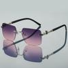 Fashion Rimless Polygon Metal Shades Women Original Brand Design Driving Sunglasses New Trendy Gradient Beach Sun Glasses