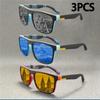 3 Sets of Retro Modern Sunglasses Black Blue Orange