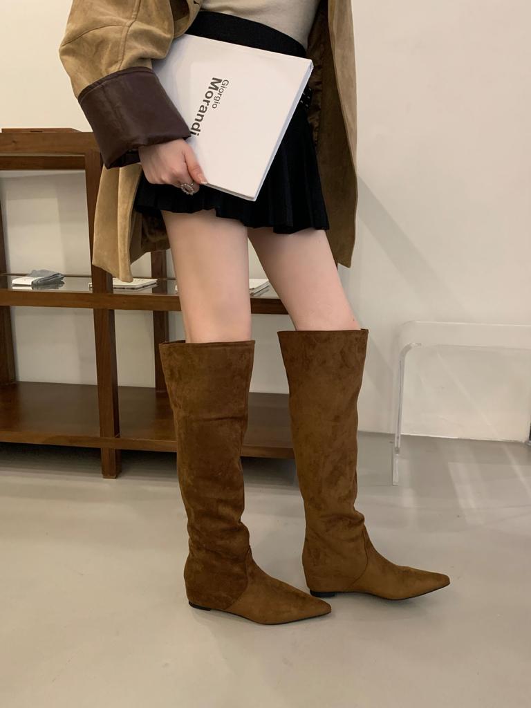 2025 new Maillard boots women's thin brown small inner height increase knee high stacking boots