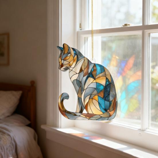 Elegant Acrylic Design: Crafted from high-quality acrylic, this stained glass butterfly pendant mimics the look of stained glass with brilliant, vibrant colors. Its lightweight yet sturdy construction ensures durability while adding a sophisticated charm to any space. The translucent material captures and reflects light beautifully, creating sparkling effects that enhance both daylight and artificial lighting environments.