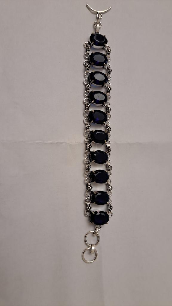 Spektakularna niebieska szafirowa bransoletka z kamieni szlachetnych tworzonych w laboratorium, ręcznie robiona, wykonana ze srebra próby 925