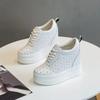Moda 12CM Mulheres Respirável Plataforma Salto Alto Escondido Sapatos Vaca Couro Genuíno Sintético Slip-On Moda Primavera Outono Tênis Chunky