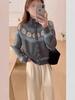 spring autumn color matching Knitted Sweater vintage printing Short Cardigan jacket Loose Crew Neck korean casual Sweaters Women