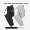 Erkek Pamuklu Spor Pantolon Dört Mevsim Gevşek Büyük Boy Düz Koşu Mikro-elastik Eşofman Altı Nefes erkek Pantolon