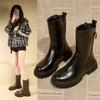 Boots Women's Winter New Leather Cigarette Boots Medium Boots Women's Chelsea Fleece Martin Boots