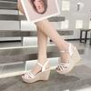 Fashion Cross Straps Open Toe Wedges Women Sandals Solid Color Open Toe Real Patent Leather Espadrilles Shoes Newest Summer 14cm Heels